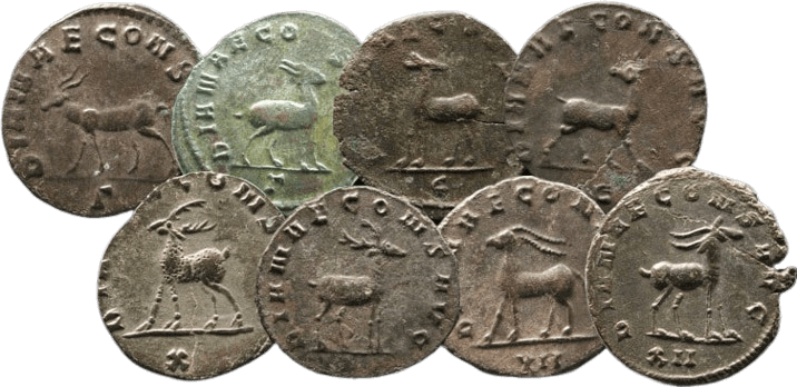 L’ultima coniatura di monete Antoniniane sotto l’Imperatore 260 - 268, Gallieno è conosciuta come la “serie zoo”, coniata nel 266 e invocava nove dei romani.